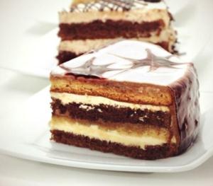 Смазать каждый корж полученной массой и выложить коржи по цвету (темный-светлый).